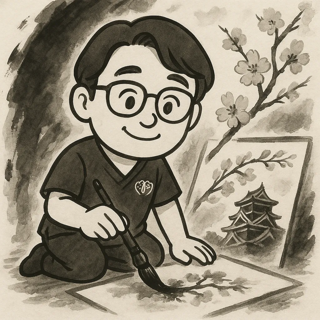 10月5日、熊本市中央区で開催された「白川秋まつり」に参加しました。クリニック近隣ではありませんが、同じ熊本市中央区の地域イベントとして、とても活気のある催しです。当日はワークショップやマルシェなど、さまざまなイベントが開催されていて、子どもから大人まで楽しめる空間でした。数あるイベントの中から、私は中央公民館で行われていた水墨画パフォーマンスを拝見しました。